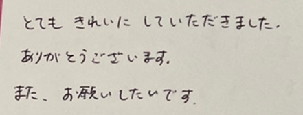 「とてもきれいにしていただきました。ありがとうございます。また、お願いしたいです。」
